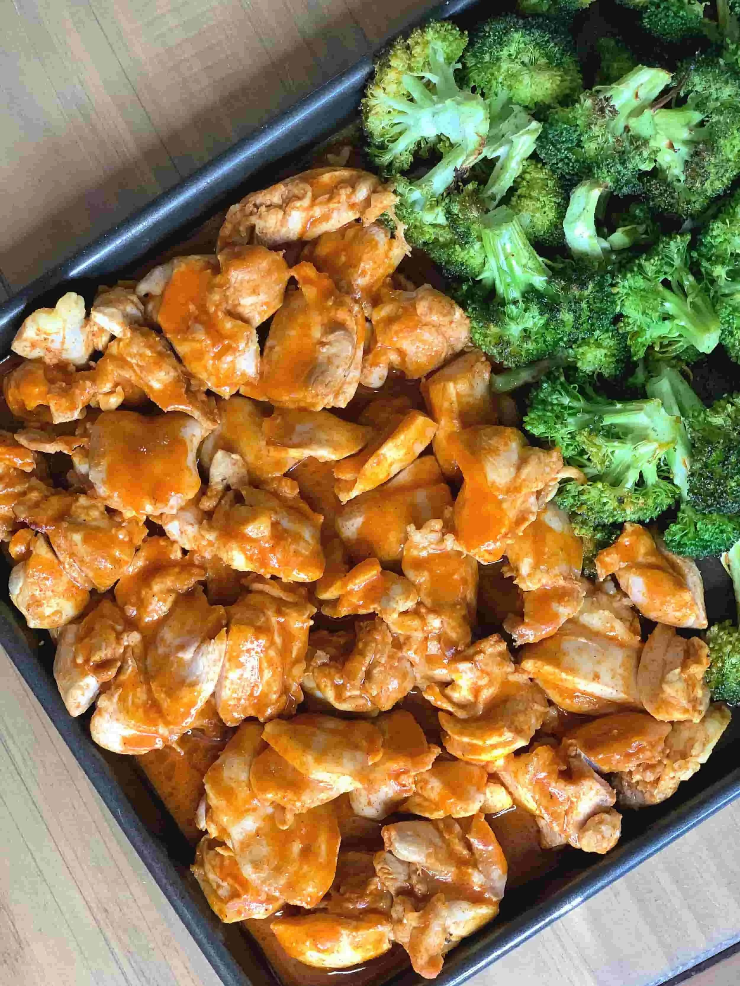 Sheet Pan Buffalo Chicken & Ranch Broccoli