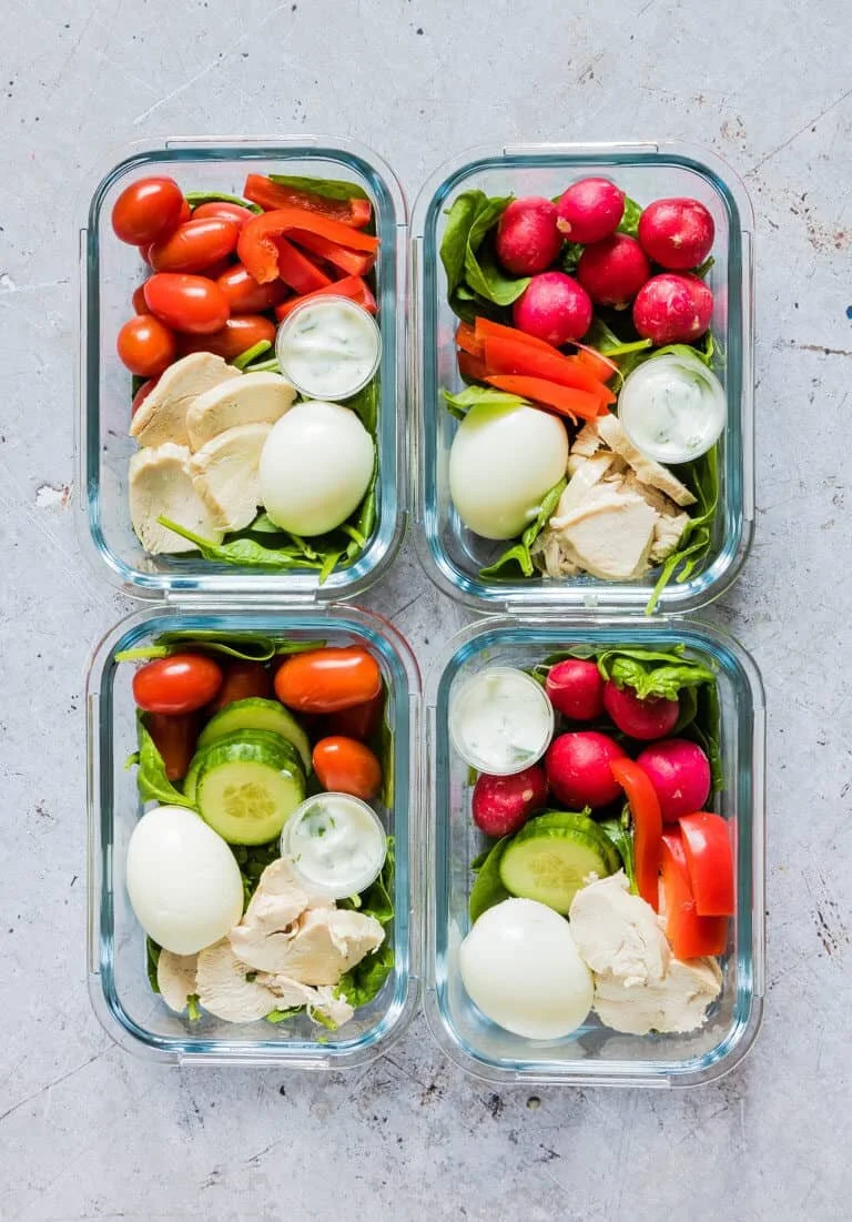 These Keto Cobb salads are the perfect low carb lunch idea to meal prep. You can make them on Sundays, portion them out and then just grab and go every morning on your way out the door!
